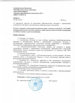 В связи с аварией и проведением ремонтных работ тепловых сетей, на сайте размещен приказ № 42-од от 06 декабря 2025 г. О переходе на реализацию образовательных программ с применением электронного обучения и дистанционных образовательных технологий.