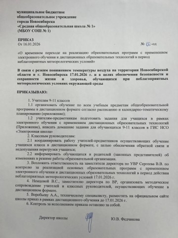 На сайте размещен приказ № 60-од от 16 января 2026 г.